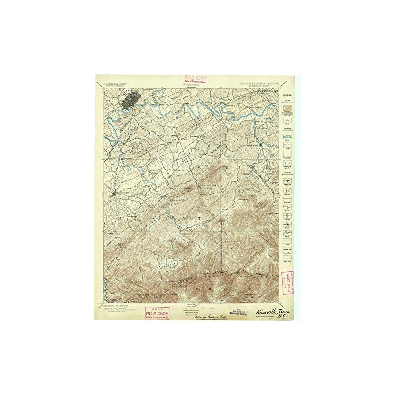 YellowMaps Knoxville TN topo map, 1:125000 Scale, 30 X 30 Minute, Historical, 1895, 20 x 16.8 in - Polypropylene