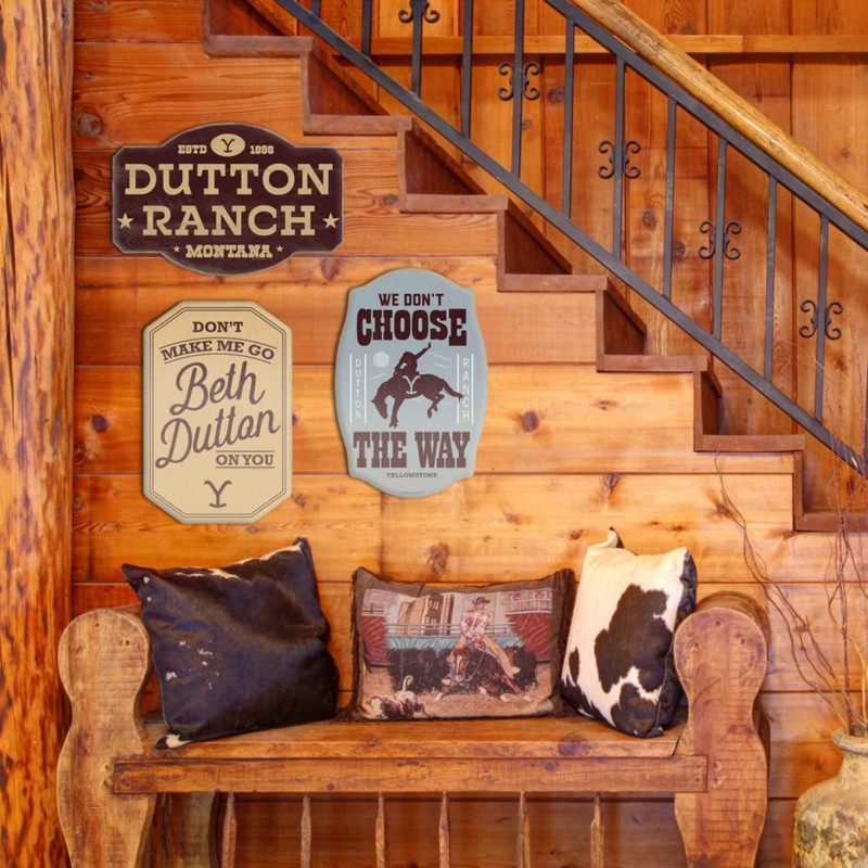 - Fun Vintage Sign: Western-style typography reads, "Don't make me go Beth Dutton on you," and the Yellowstone brand completes the look. It's truly a must-have for any Yellowstone fan!
