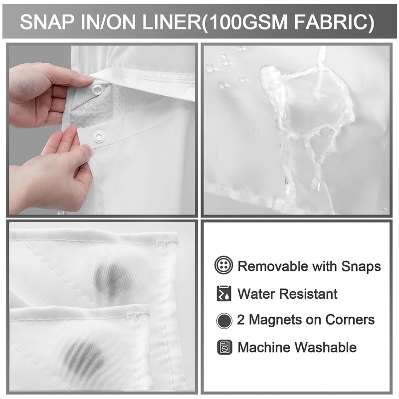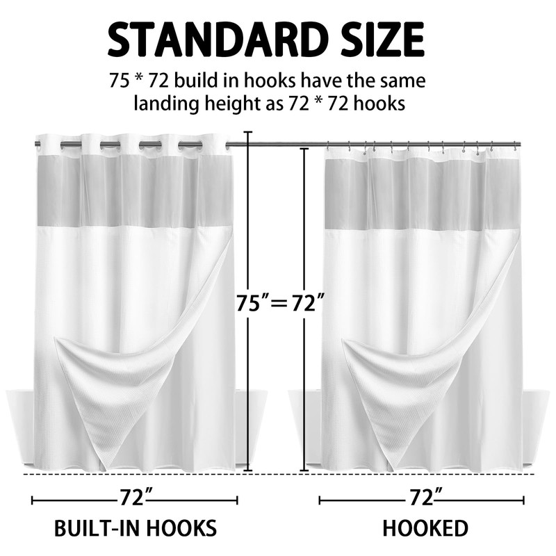 - 【Hotel and Spa Vision】: This no hook waffle shower curtain with a snap-on liner set creates a hotel-inspired bathroom. You'll feel like you're pampering yourself at a hotel spa whenever you take a shower. You will love the fit of the shower curtain and the fact that it has an inner liner. The outer layer does a great job of wicking water to keep it dry;