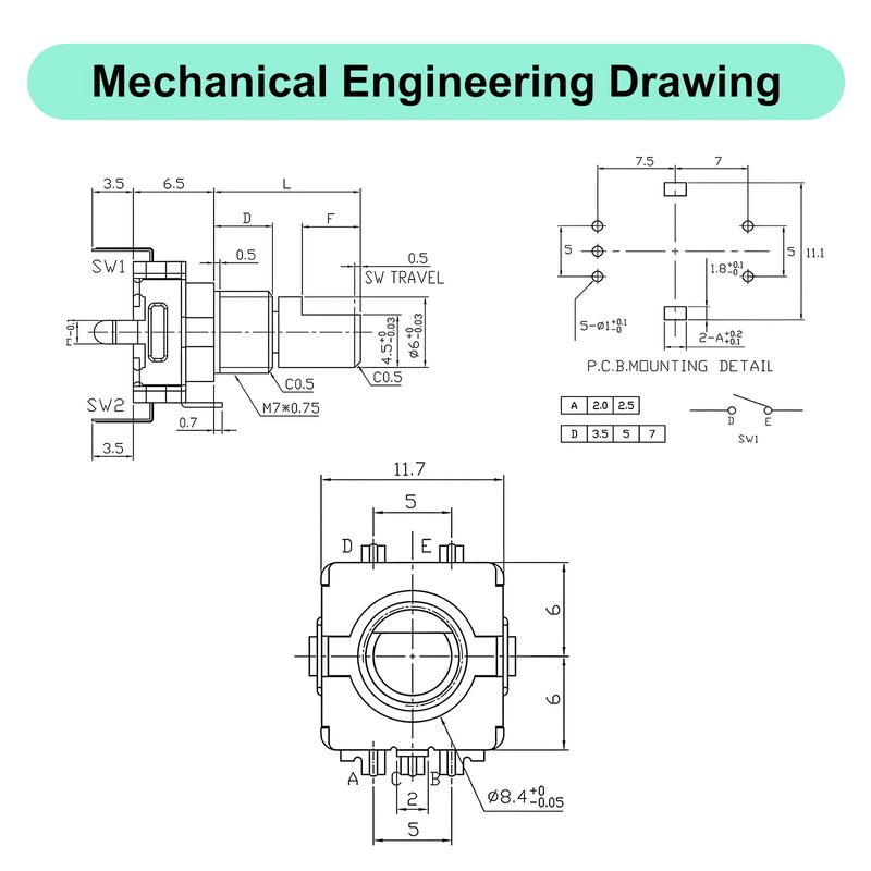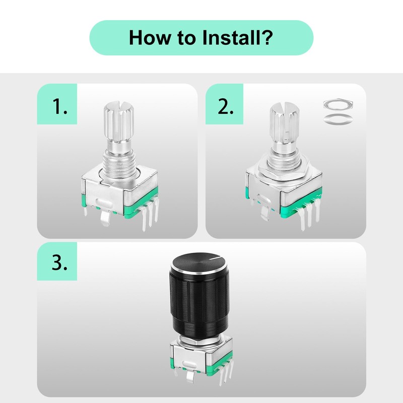- Working Principle: EC11 rotary encoder switch detects the rotation angle and speed through the internal rotary encoder. When the rotating shaft rotates, the photoelectric sensor detects the change of the light signal, generates a pulse signal, transmits it to the external circuit for processing, and determines the rotation angle and speed
