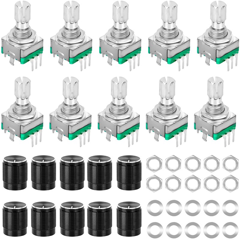 YELUFT 10pcs EC11 Rotary Encoder with Push Button 360° Rotation 5 Pins Digital Potentiometer Handle Length 15mm with Knob Cap for Arduino Raspberry Pi ESP32