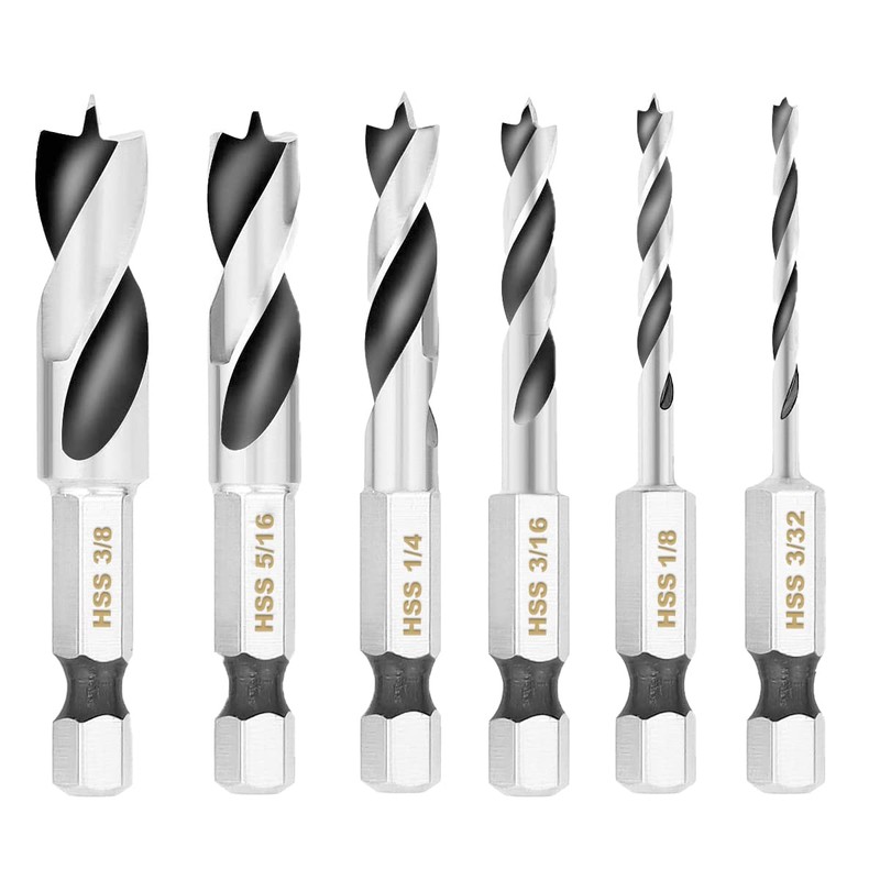 YENJO 6 Pcs HSS Stubby Drill Bits Set for Wood, Hex Shank High Speed Steel Wo...