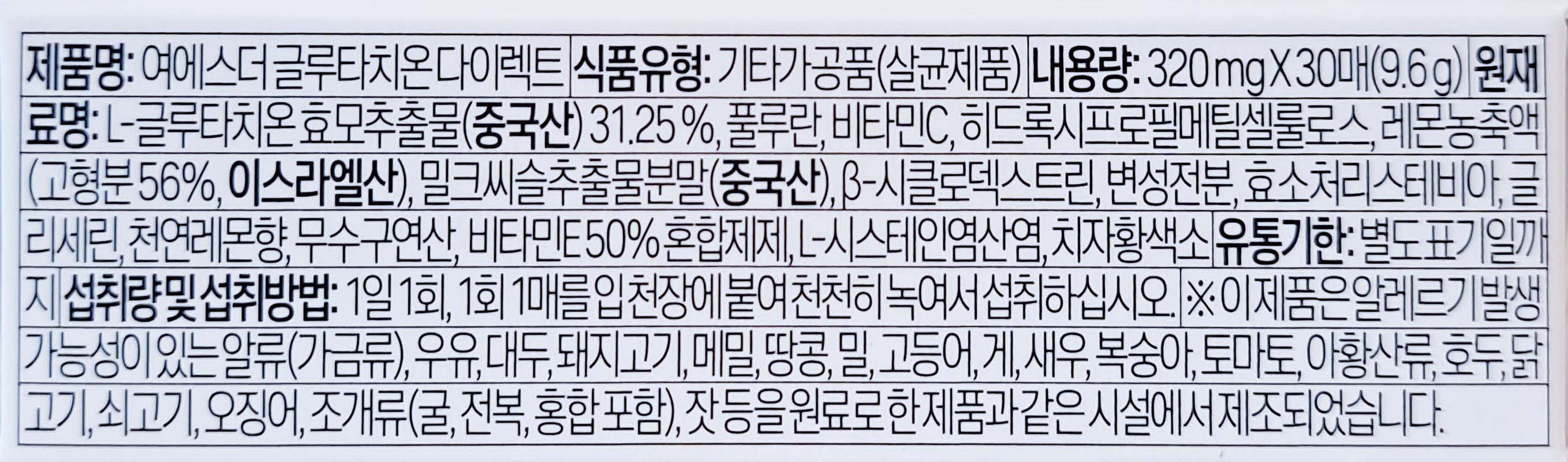 Yeo Esther Glutathione Direct 320mg 30 sheets x 2 boxes Esther Formula Film / 여에스더 글루타치온 다이렉트 320mg 30매 x 2박스 에스더포뮬러 필름