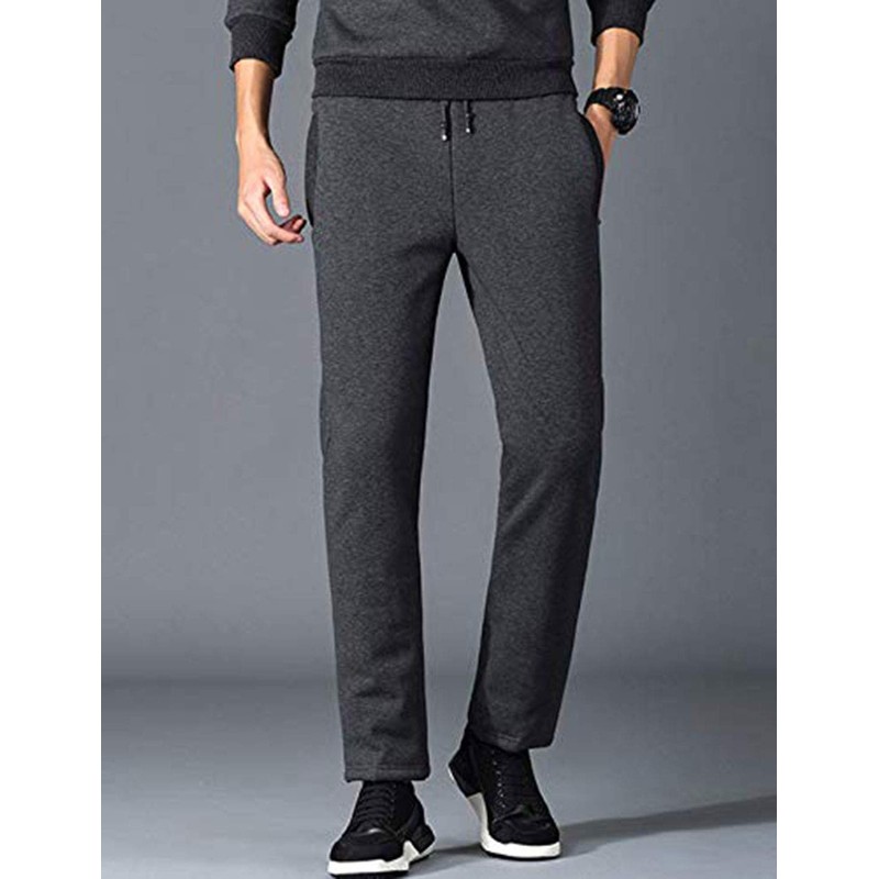 Yeokou Mens Winter Warm Sherpa Lined Active Thermal Jogger Fleece Sweatpants Pant (X-Large, Style12Grey-Straight Leg)