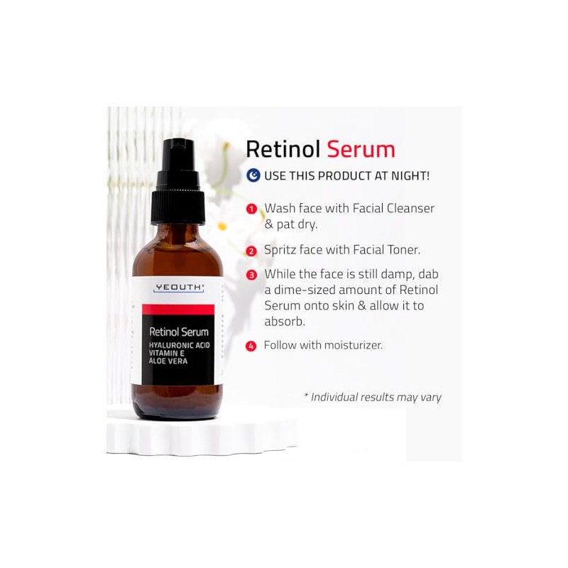 YEOUTH - YEOUTH - Suero Facial - Serum Facial de Retinol con Ácido Hialurónico, Vitamina E y Aloe Vera, Serum Antimanchas, Antiedad, Antiarrugas e Hidratante Uso Nocturno, Todo Tipo de Piel, 60 ml. 🏆 Reconocido por su excelente relación calidad-precio. Construcción robusta y atención al detalle. 📦 Entrega rápida y segura. Ideal para quienes buscan lo mejor en calidad y estilo. Producto auténtico con satisfacción total asegurada. ¡No te quedes sin el tuyo y aprovecha esta oportunidad única!