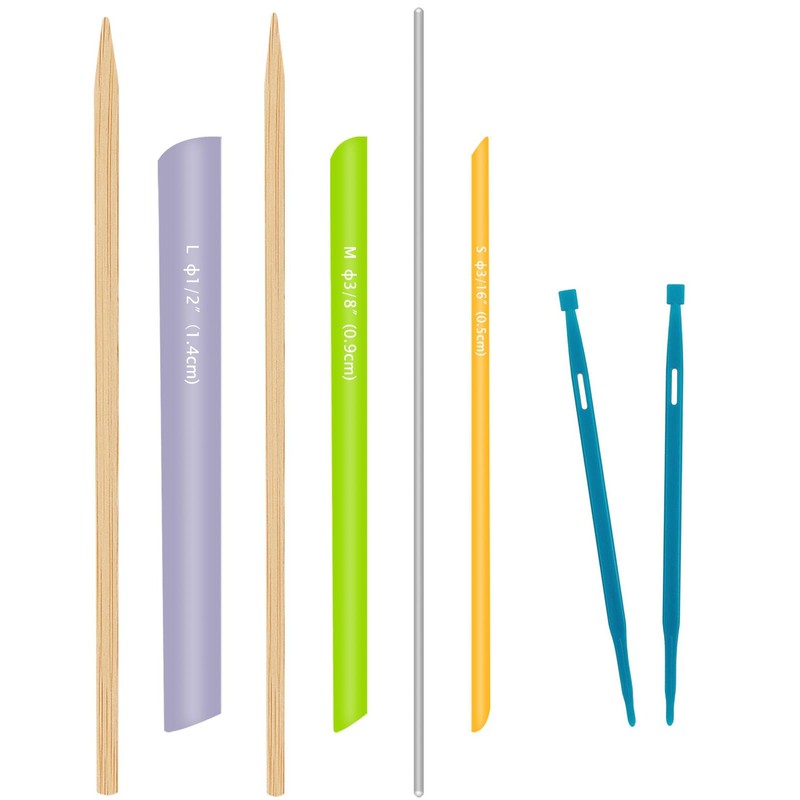 - 3/16 inch (0.5 cm) cylinder, for 3/8 inch to 5/8 inch (0.9 cm to 1.6 cm) fabric tubes; 3/8 inch (0.9 cm) cylinder, for 3/4 inch to 1 inch (1.9 cm to 2.54 cm) fabric tubes; 1/2 inch (1.4 cm) cylinder, for 1 inch (2.54 cm) or large fabric tubes.