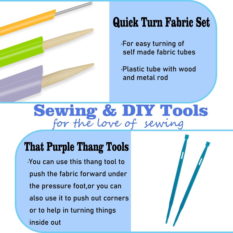 - Packaging Includes: Quick Turn Fabric & That Purple Thang Sewing Tools, Total: 8PCS