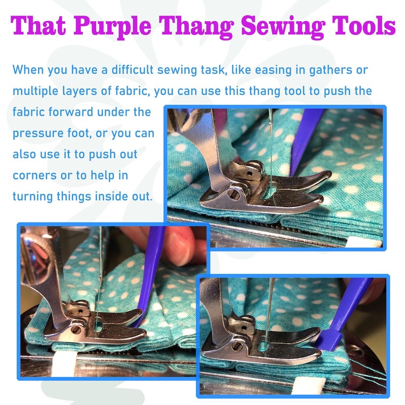 - That Purple Thang Sewing Tools - When you have a difficult sewing task, like easing in gathers or multiple layers of fabric, you can use this thang tool to push the fabric forward under the pressure foot,or you can also use it to push out corners or to help in turning things inside out