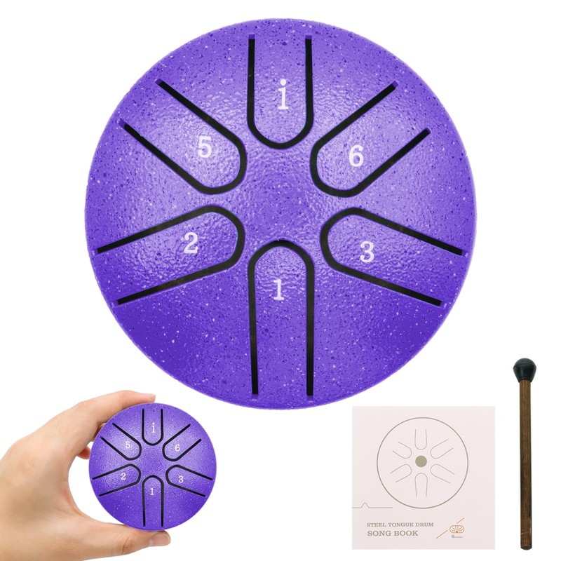 Yeria Rain Drum for Outside, Steel Tongue Drum Rain, 3 Inch Sound Healing Drum Kit,Mini Handpan Drum, 6 Note Worry Free Drum, Beginner Handpan Drum Percussion (Purple)