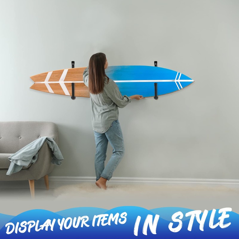 - SPACE SAVING: Our surfboard hangers utilize wall space that would otherwise get wasted; The rack arms extend only 11 13/16 inches from the wall, being a plus for small spaces; There won’t much clearance required for secure loading and unloading