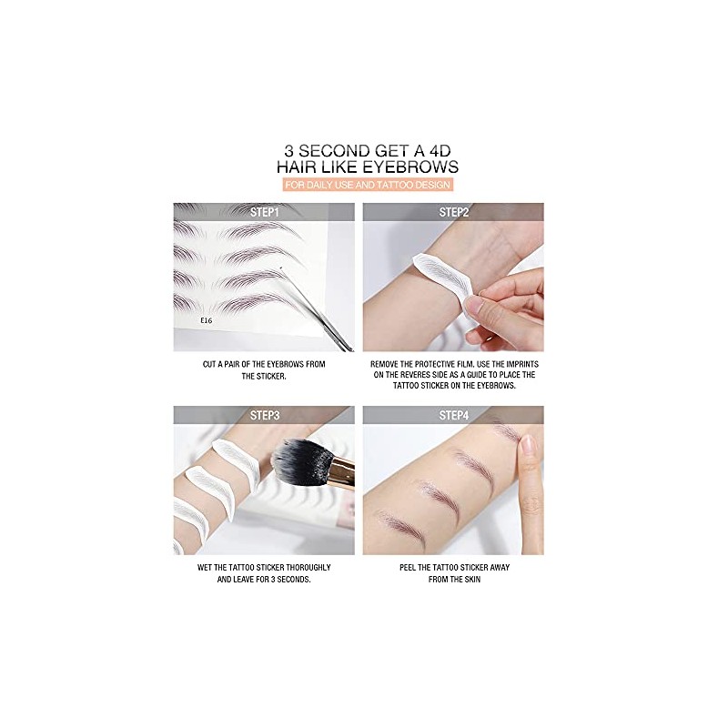 - How to Apply - Only a small amount of water to moisten the sticker, wait for ten seconds and tear it open to get natural eyebrows.If you want to get a better effevt, you may shave your eyebrows.If it is shiny after pasting, you can use some loose powder and talcum powder to achieve matte.
