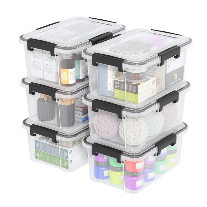 Yesdate 6-Pack 12 Quart Stackable Storage Bin with Latching Lid and Tight Seal, Plastic Airtight Storage Container Box, Clear