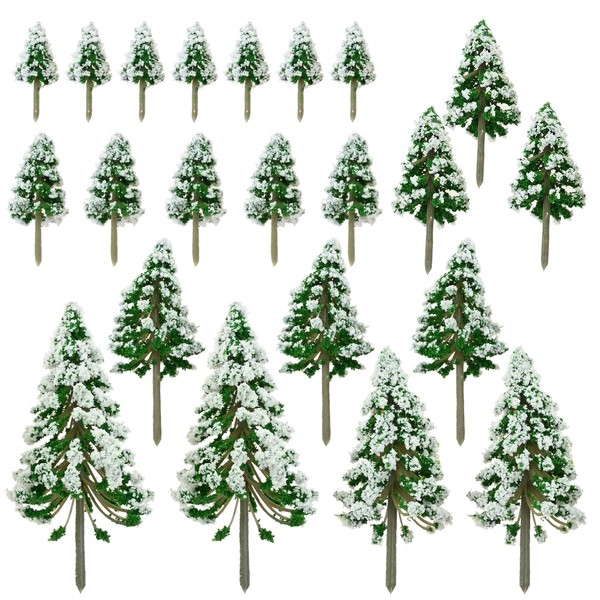 Yetaha 22PCS Artificial Trees, Mixed Scale Model Trees, Snow Frost Trees, 5cm,7cm, 8.5cm,10cm, 12.5cm, 15cm for Micro Train Landscape Railway Sand Table Christmas Party and Home Holiday Decoration
