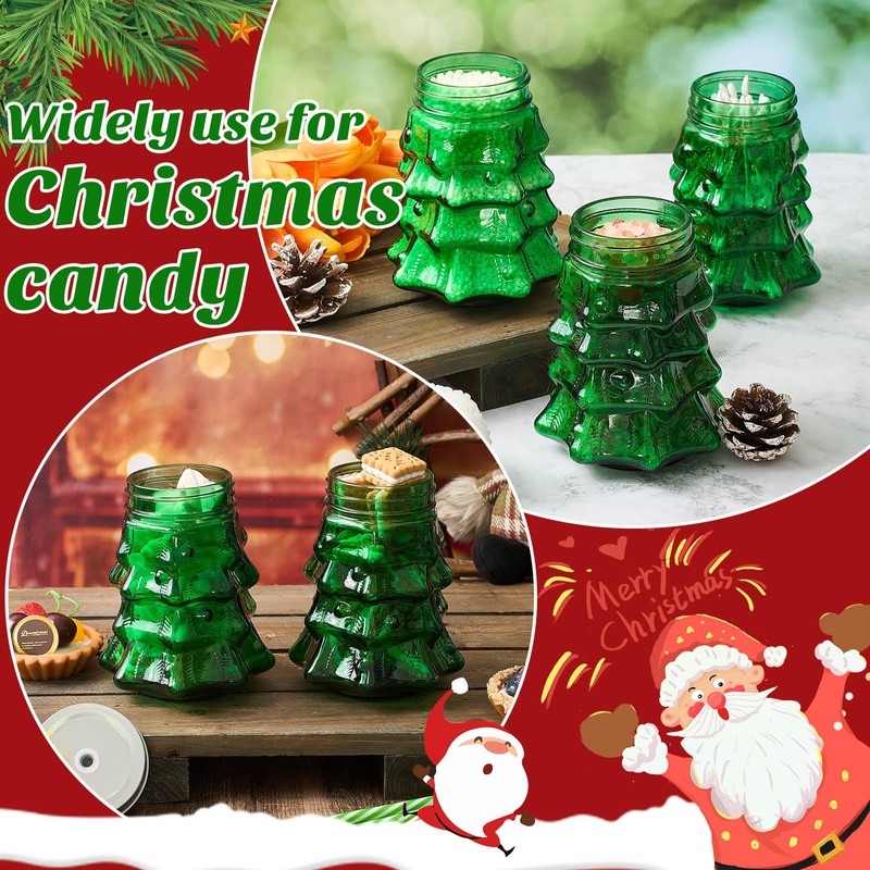 Yetene 6 Pcs Christmas Tree Glasses Cups 19 oz Candy Mason Jar with Lids and Straw Reusable Christmas Drinkware Cookie Storage Holiday Tumbler Mug for Xmas Party Gift