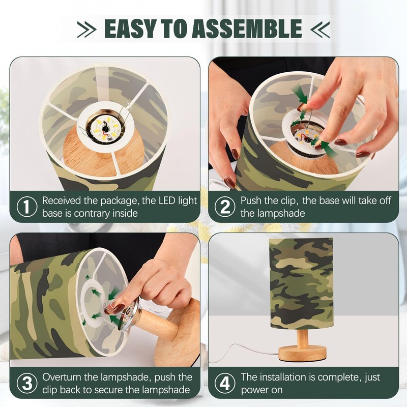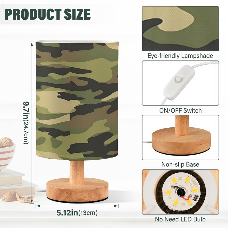 YETTASBIN Camo Bedside Table Lamp, Small LED Desk Light USB Nightstand Lamp with Non Slip Wood Base & Eye-Friendily Lampshade for Living Room Bedroom Dorm Home Office Desk Decor