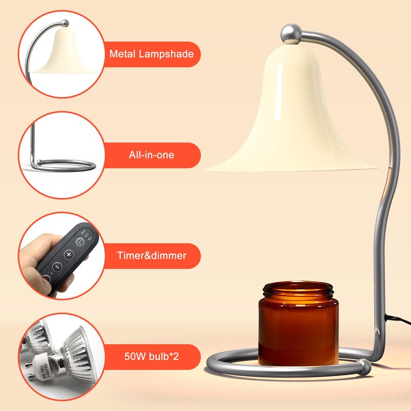Yeuslor White Trumpet-Shape Candle Warmer Lamp,with Timer and Dimmer,Adjustable Brightness,All Metal Lamp Body,Suitable of Aromatherapy Waxes