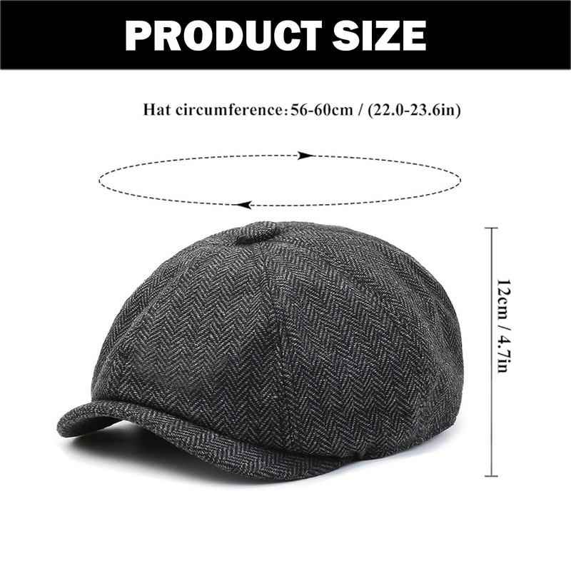 - Product size: Size L (58 cm) fits a head circumference of 56-60 cm (22-23.6 inches). This peaky blinders hat is the perfect autumn winter hat. Please measure your head circumference carefully before placing an order so as not to cause you any inconvenience.