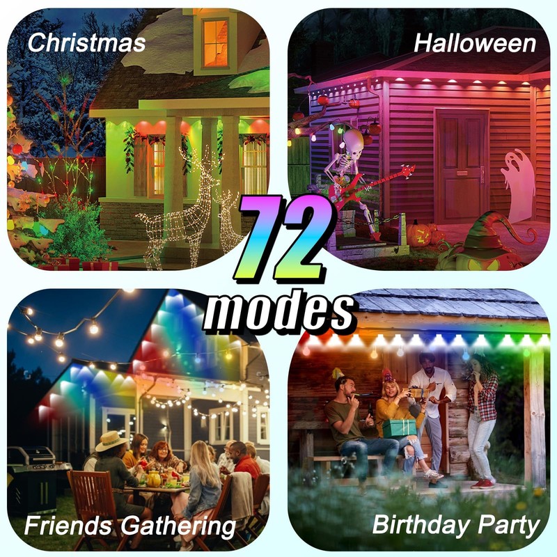 - 105FT Outdoor String Lights: Illuminate your garden and yard with vibrant RGB colors using Permanent Outdoor Lights. With 72 scene modes and 30 lumens brightness per light, create a festive atmosphere for any occasion.