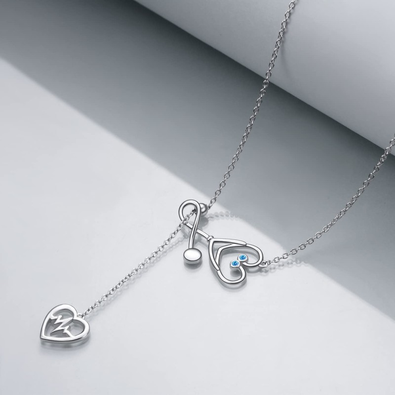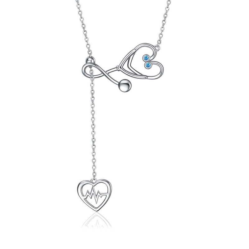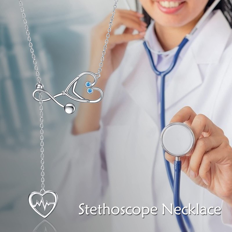 - ❤Collar de estetoscopio para enfermeras❤ Este exclusivo collar de estetoscopio está diseñado especialmente para enfermeras, médicos, profesionales o cualquiera de los profesionales médicos, deja que esa enfermera o médico importante en tu vida sepa que es un ángel. El collar de estetoscopio con colgante de circonita cúbica de piedra natal es un regalo de joyería significativo para mostrar el amor desinteresado del personal médico.