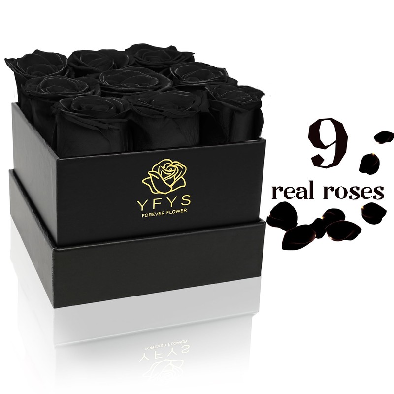 YFYS Forever Flowers for Delivery Prime - 9pcs Preserved Fresh Roses, Genuine Roses That Last for Years, for Birthday Gifts for Women, Valentines Day, and Mother's Day (Black)