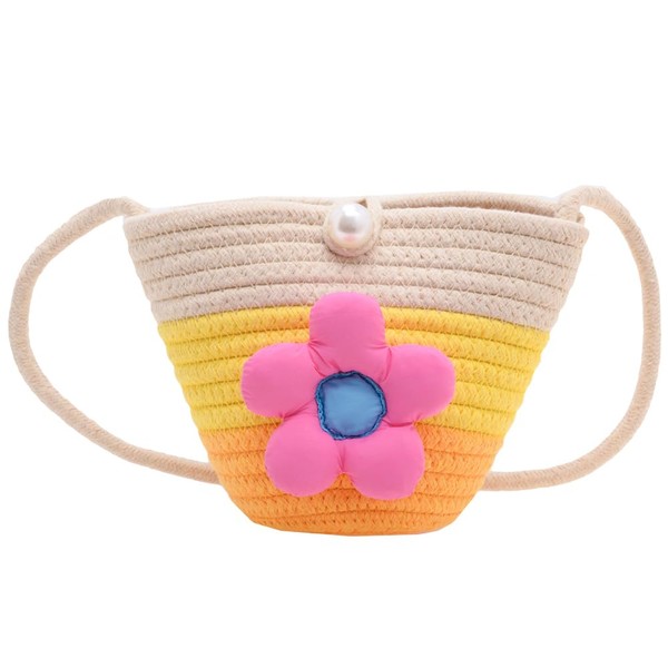 YGCHEN Girls' Bags Flowers Straw Bag Woven Beach Handbag with Bead Closure Shoulder Bag Floral Boho Beach Bag for Holiday Travel Outdoor Activities