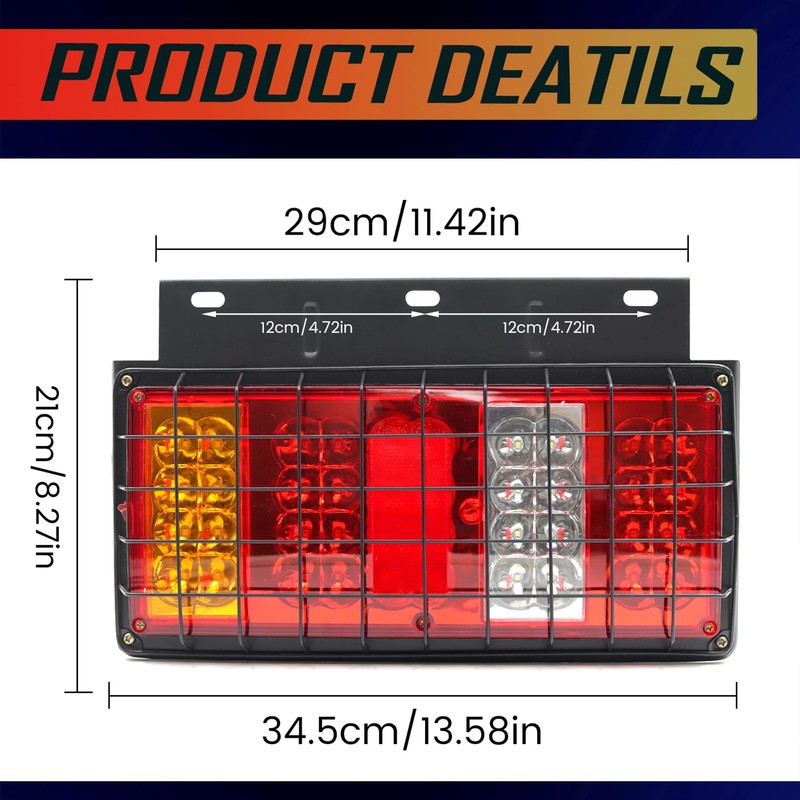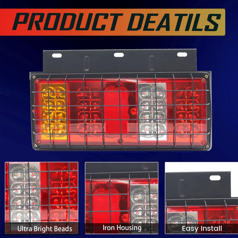 Ygmylandbb LED Truck Tail LED Truck Tail Light, Trailer RV Tail Lights with Iron Net Protection 12V Turn Signal Brake Reverse Taillights, 2pcsLight, Trailer RV Tail Lights 2pcs (24V)