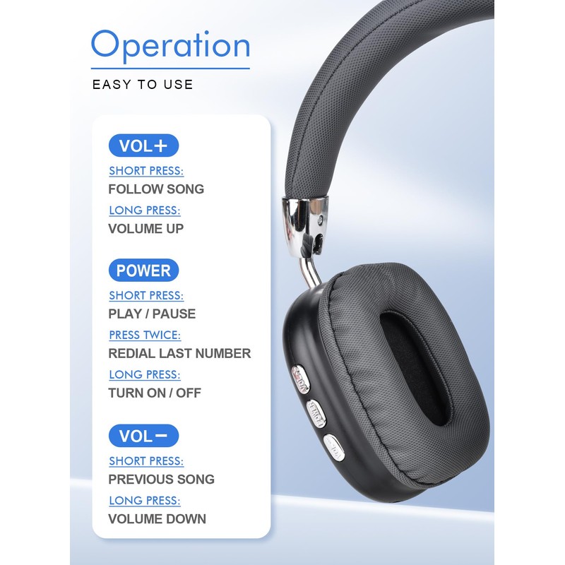YGVCDRY B36 Wireless Bluetooth 5.3 Over-Ear Headphones, 8H Playtime ANC Noise Cancelling Headphones, Foldable, Ergonomic, HD Microphone, for Mobile/PC/Game Console (Black)