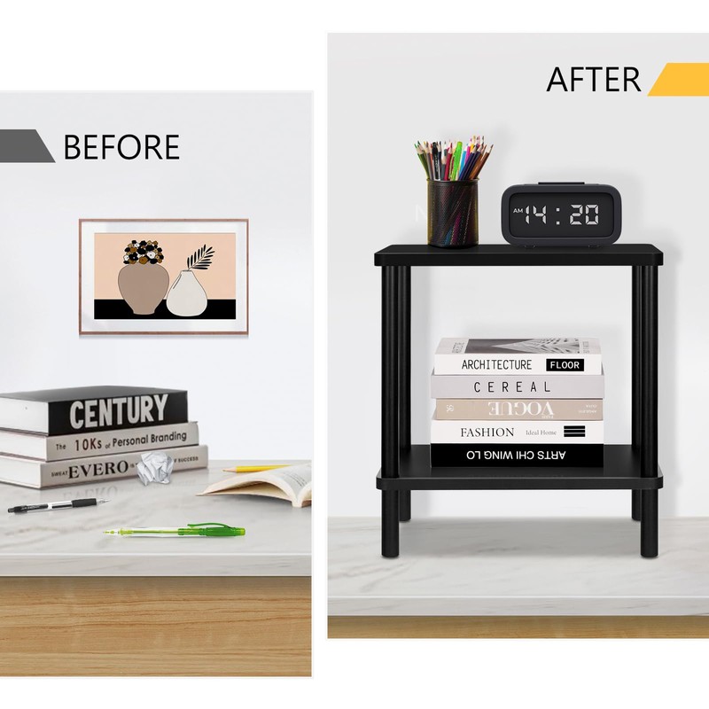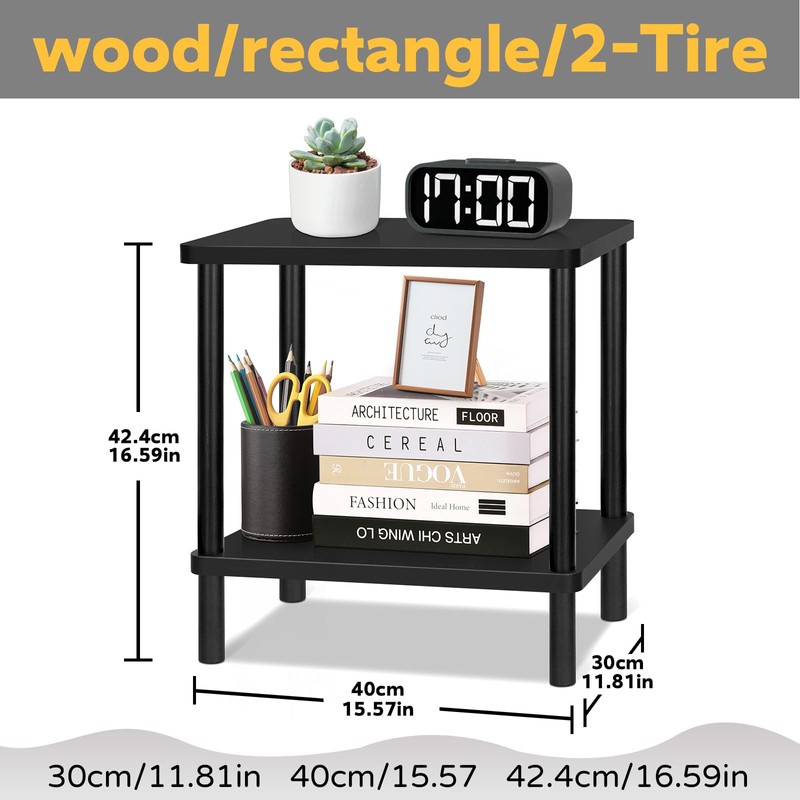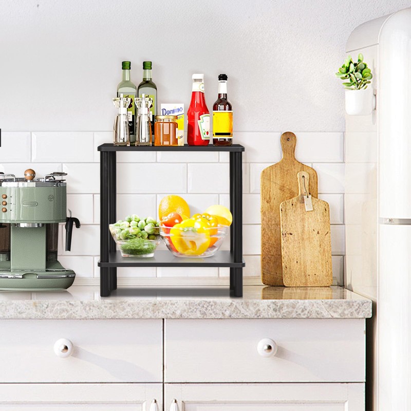 YGYQZ Wood Office Desk Shelf Organizer - Desktop Supplies Cute Dresser Top Organization Storage Rack Aesthetic Bookshelf for Women Man and Kids (Black-Two Tier)