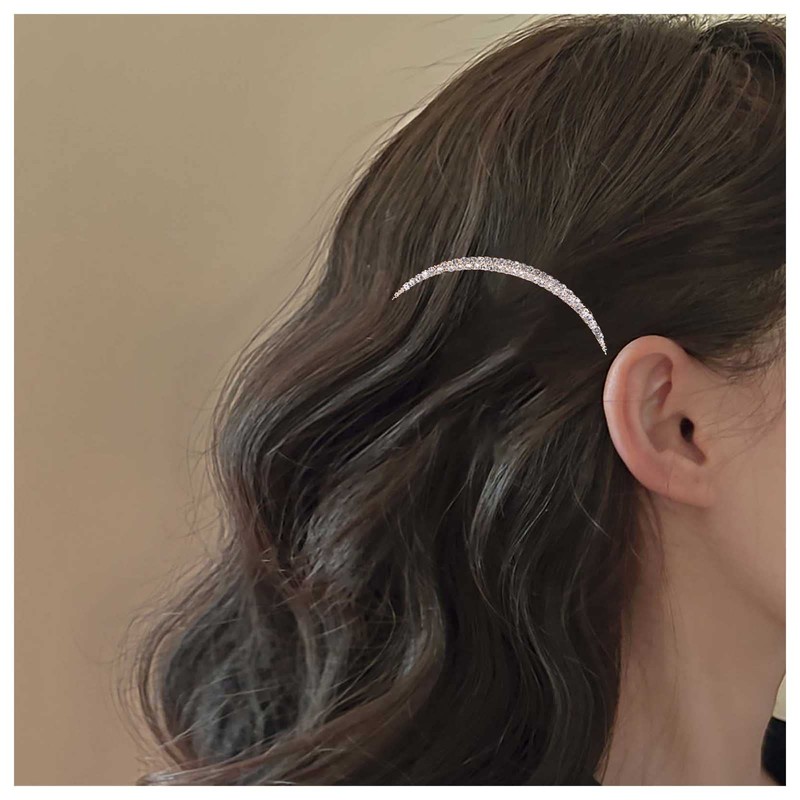 - Pasador de pelo de luna con circonitas doradas hecho de aleación y cristal de alta calidad, fácil de llevar y combinar con la ropa.