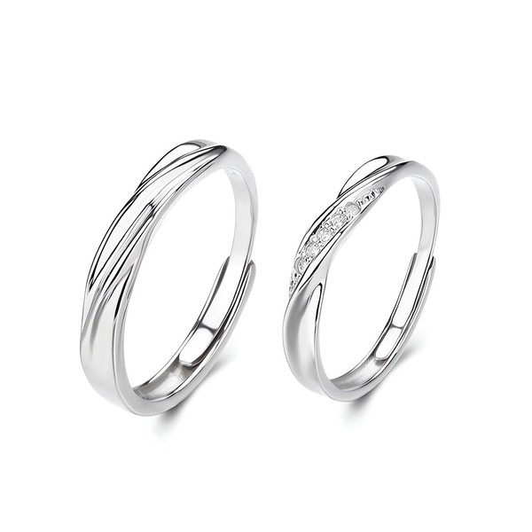 YHIJSR Pack of 2 Silver Couple Rings with Opening, Adjustable Pair Ring Diamo...