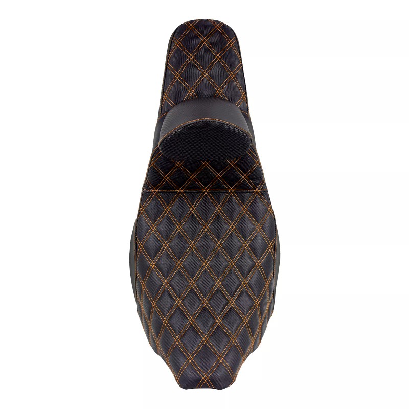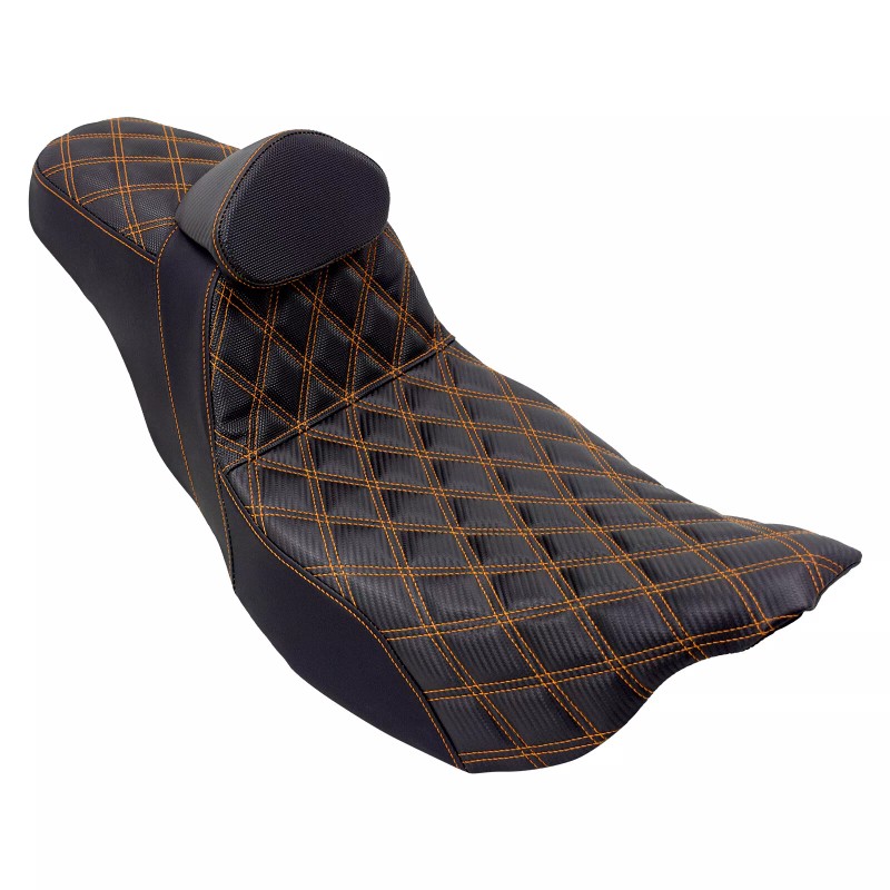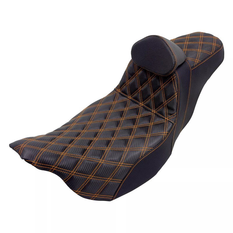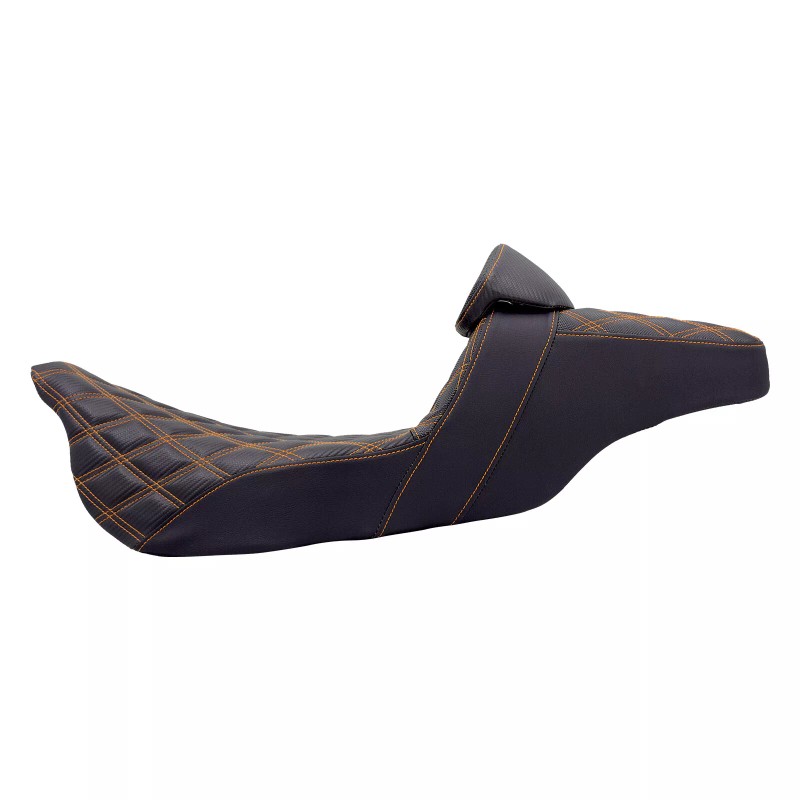 Blends rider and passenger comfort with the ergonomics required to keep the rider locked in place