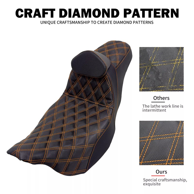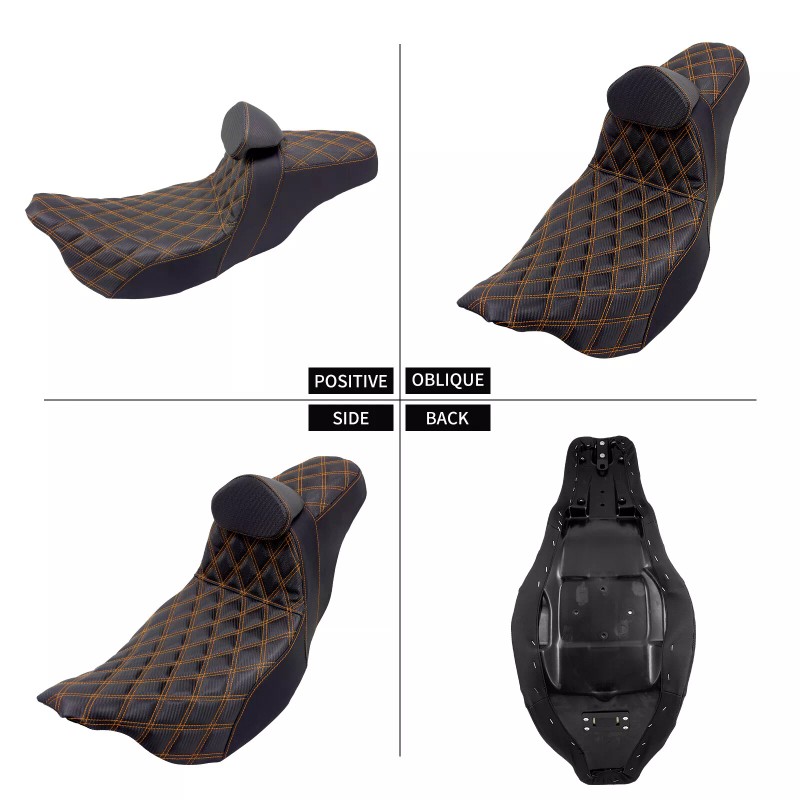 YHMTIVTU Step Up Seat Orange Line Rear Passenger Driver Backrest For Harley Touring 09-23