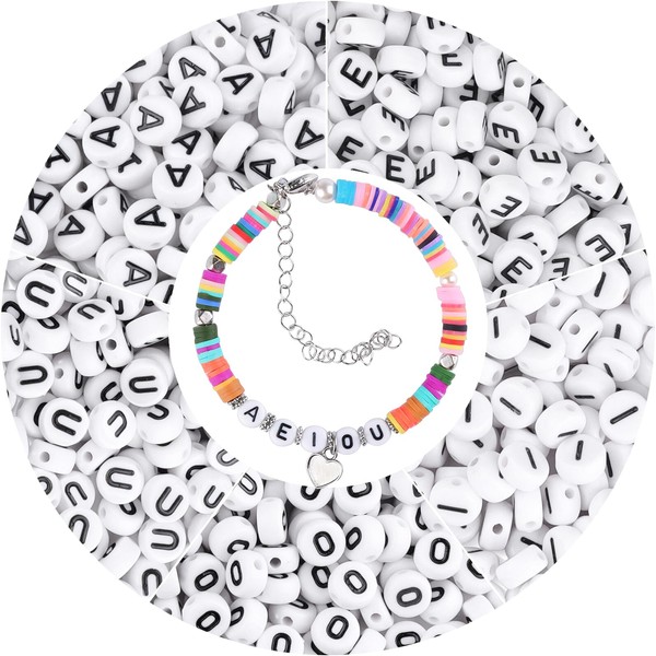 Yholin 500pcs Letter Beads, Vowel Letter Beads for Friendship Bracelets Making Kit, DIY Jewelry Making Supplies Alphabet Beads