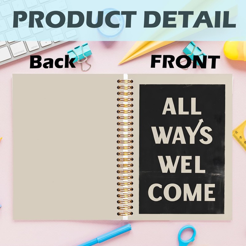 Yhtrg Eclectic Boho Western Spiral Notebooks, Western Journaling Notebook, All Ways Welcome Southwestern Black and White Notebook for Note Taking, Boho Office Supplies, 5.5x8.3 Inch