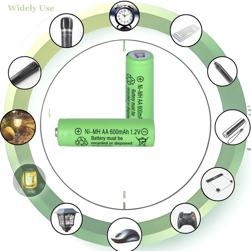 - Widely used:Nickel-metal hydride 1.2v 600mAh aa solar batteries outdoor solar lights, outdoor garden lights, solar powered lighting lawn stakes, landscape lights, solar lawn lamps, digital cameras, portable camcorders, torches, remote controls, toys, electric shaverswireless,keyboards, remotes, LED lights