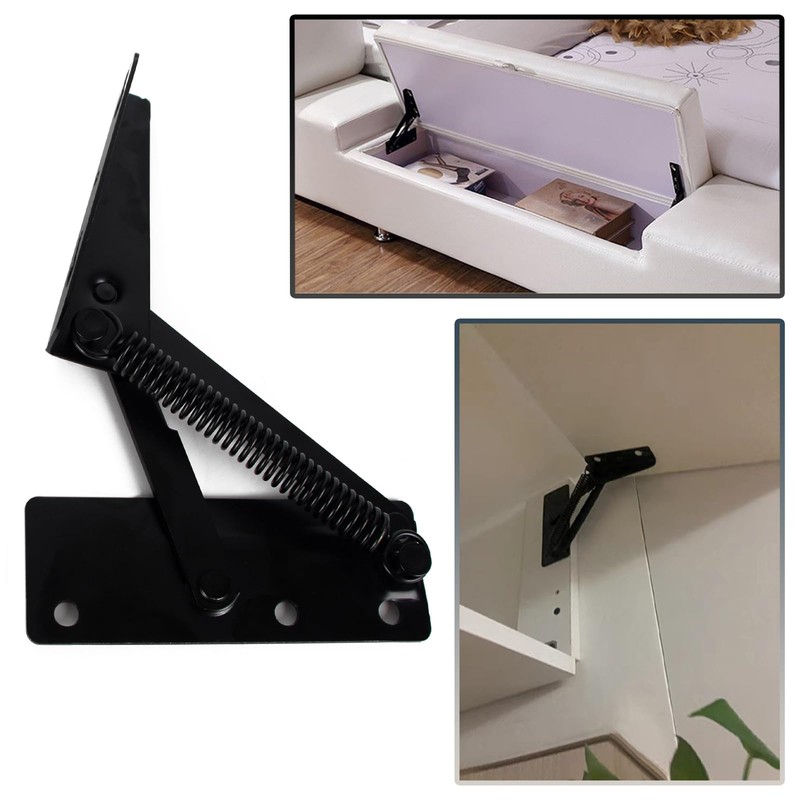 YIDELAI 80 Degree Folding Spring Hinges (1 Pair) Lid Lifting Bracket Sofa Headrest Hinge (Black)