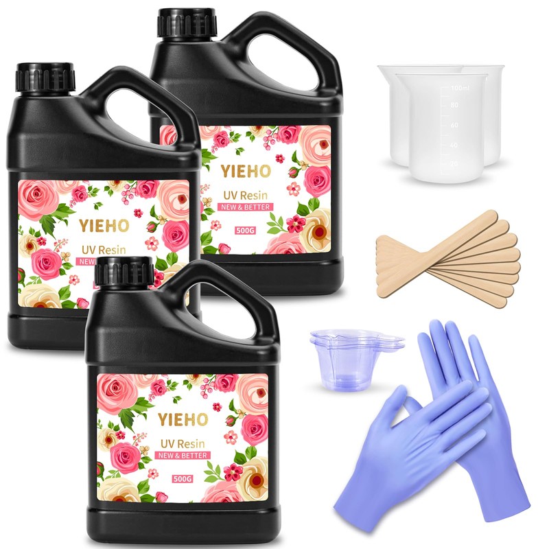 YIEHO UV Resin 1500g -Bulk Upgraded Crystal Clear Hard UV Fast Curing Epoxy Resin Supplies for Craft Jewelry Making with Sticks and Gloves