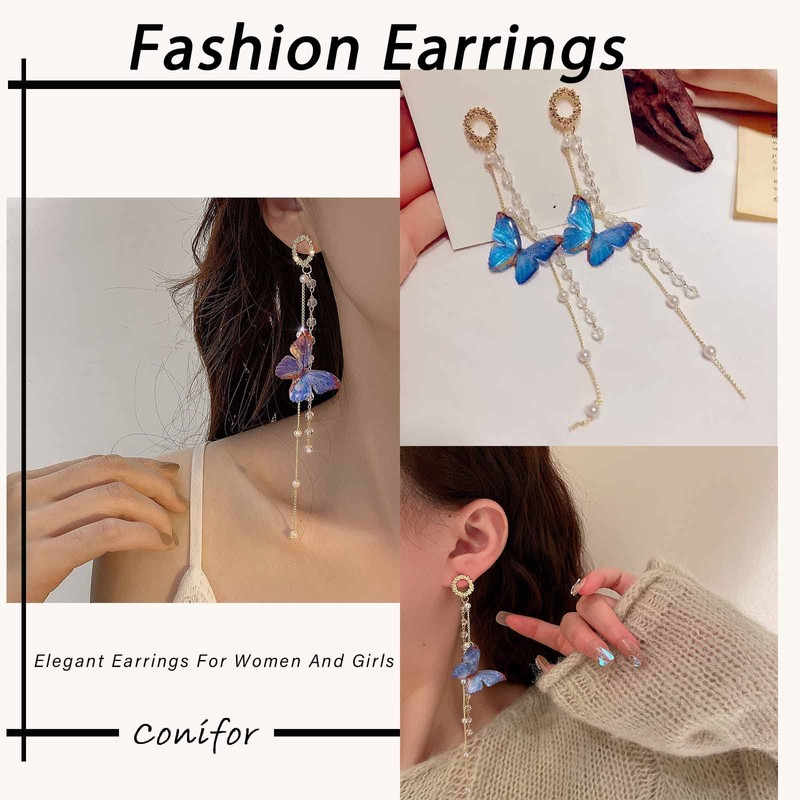 Features: pearl butterfly tassel drop earrings, no matter what season, you can choose your favorite style with other accessories.
