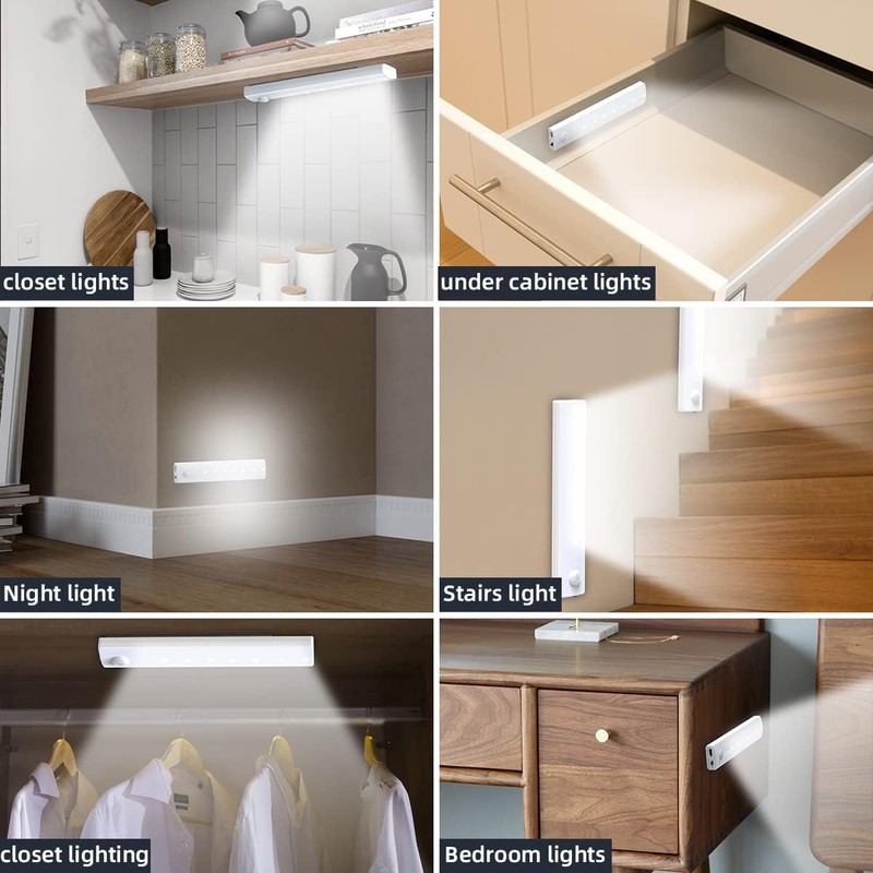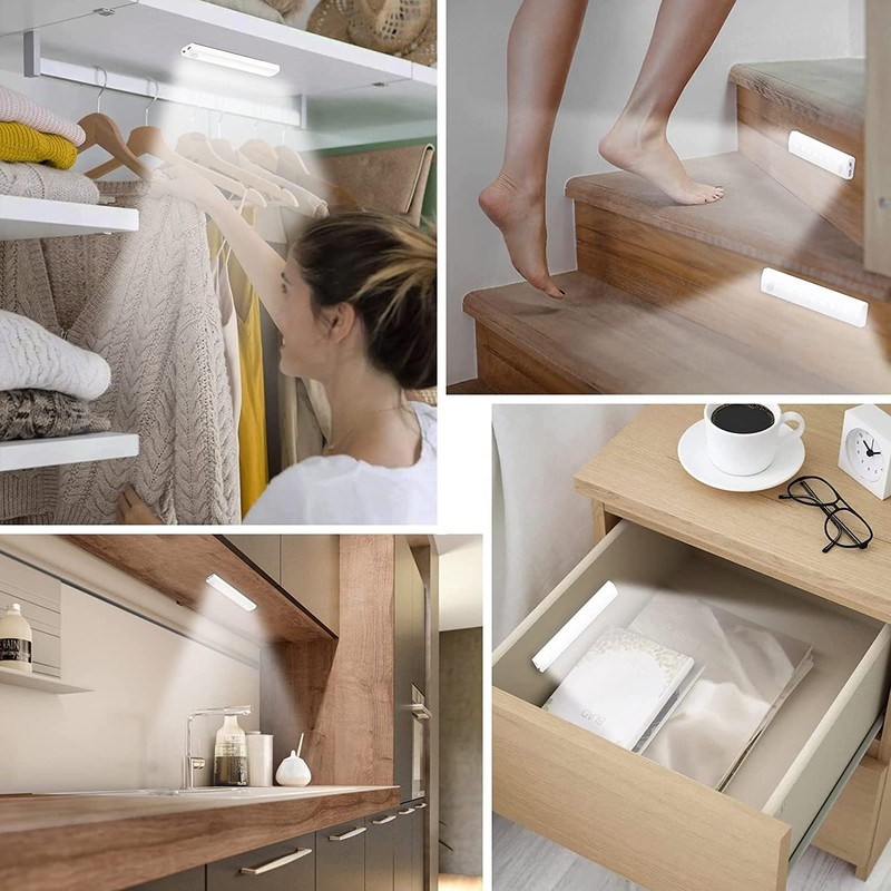- WIDE APPLICATIONThese battery led strip lights are small in size,under cabinet lights won't take up too much space, stylish in appearance, and can be used in many places in daily life, such as kitchens, closets, drawers, stairs, dressers, cabinets, bedrooms, hallways, pantries, workshops, basements, stairwells, staircases, storage rooms, etc. night light helps you light up every place that needs light.