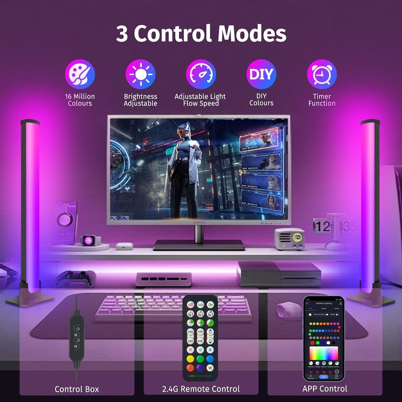 - 3 control methods: This RGB ambient lamp is powered by USB and can be controlled via remote control, app and control box on the USB cable. The remote control and app can switch the light effects of multiple scenes by adjusting the brightness, light flow speed and DIY colours. (The remote control uses advanced 2.4G technology and works within 10 m).