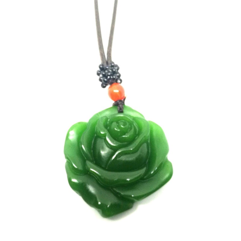 yigedan Natural Green Jade Rose Leather Rope Pendant Necklace, Leather, Jade