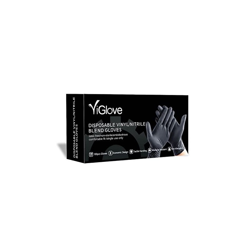 YiGlove Black Nitrile Blend Gloves, 100 pcs (Small)