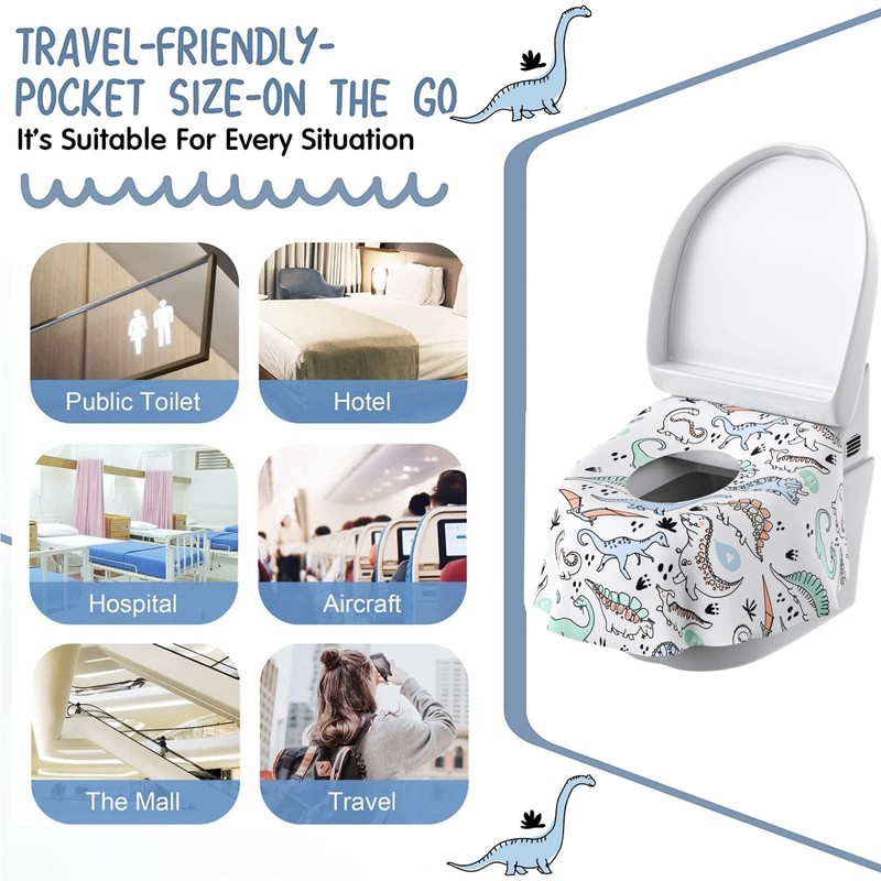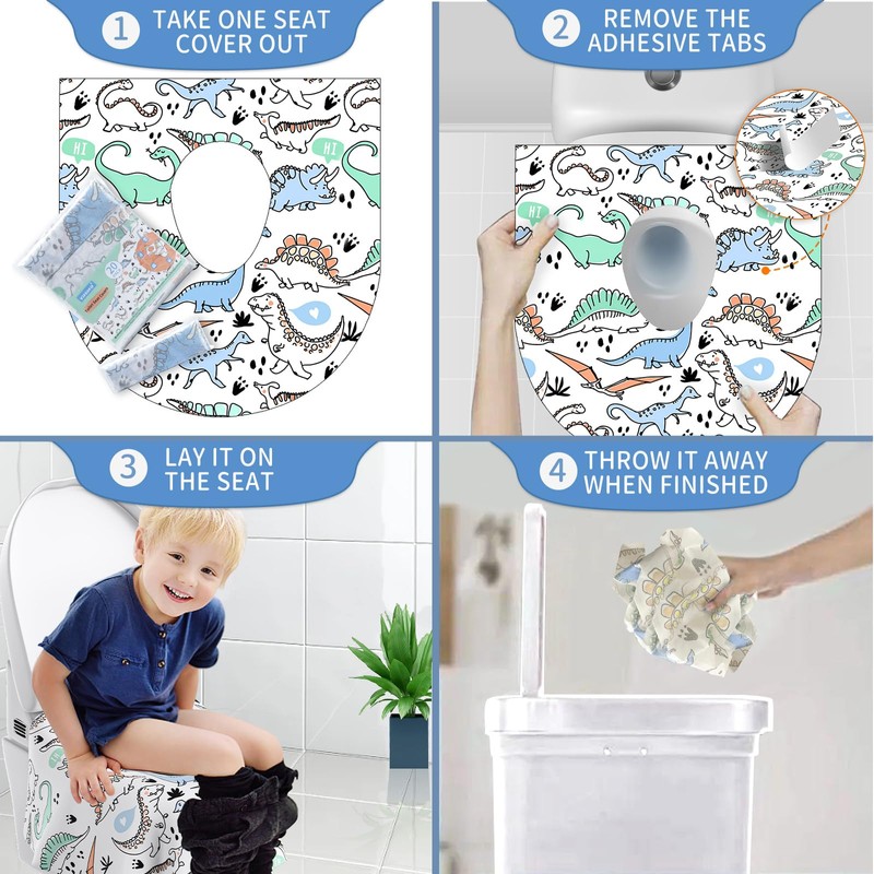 - Non-slip design and easy to use: our toilet pads are essential for travel, public bathrooms and airplanes. Pull one out of the packaging, unfold it and reveal the 3 adhesive tapes, place them on the seat to prevent them from slipping, and ready to use. Throw in the bin after use. With its non-slip design, you don't have to worry about the toilet pad tearing or slipping when you sit on it