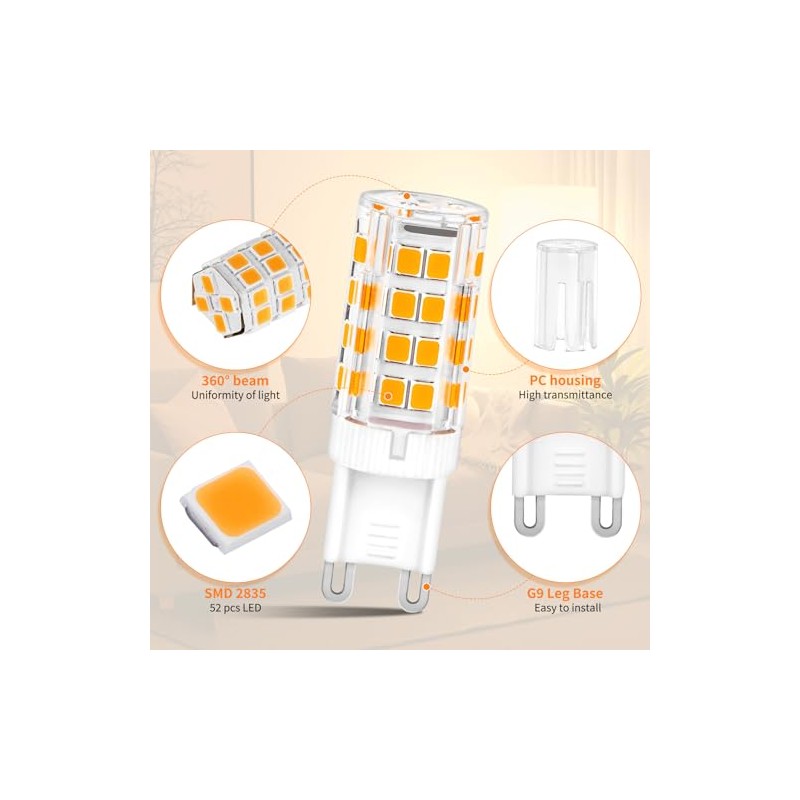 - WICHTIGER HINWEIS: G9 LED-Glhbirnen sind nicht flackernd und nicht dimmbar, bitte nicht mit Dimmern verwenden! LED-G9-Glhbirnen sind fr AC 220-240V geeignet.