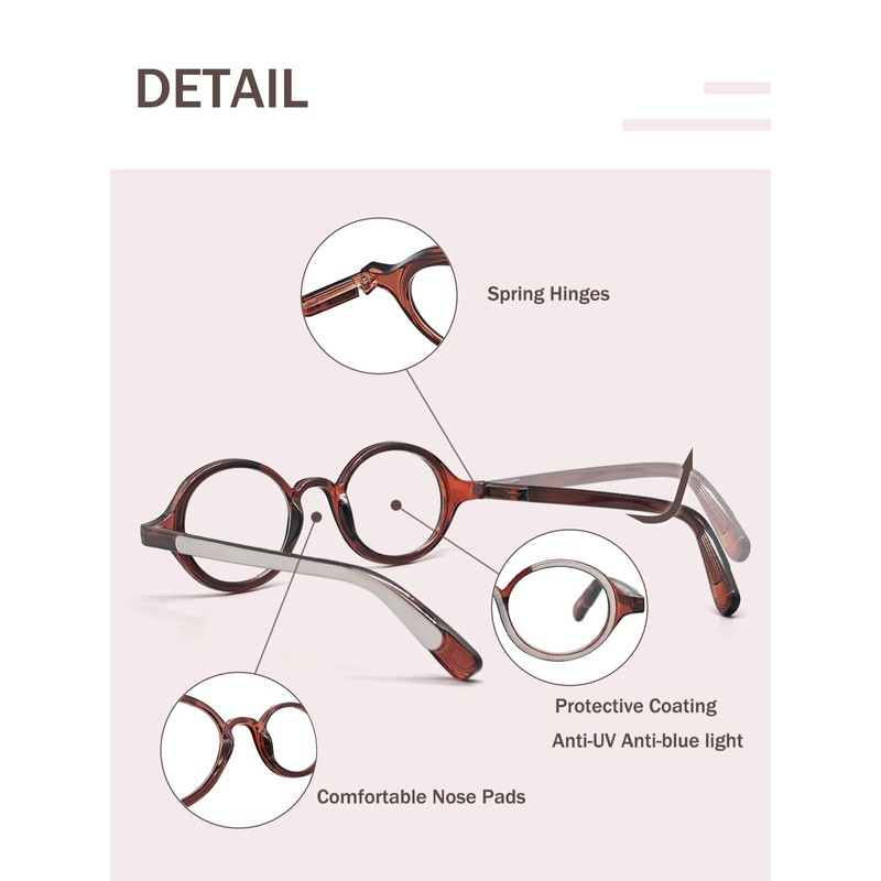- CLASSIC RETRO OVAL EYEWEAR:The classic round frame design reading glasses are paired with a mixed color design, making the readers look both cute and retro, recreating the magical style.