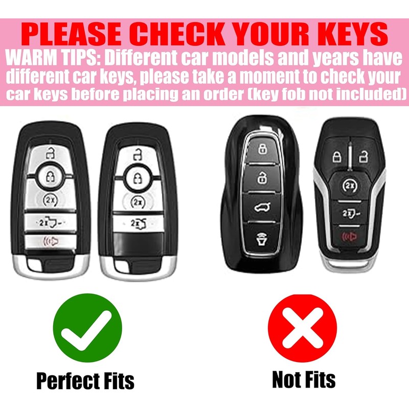 Fits Key Model: The key fob cover is compatible with Ford Explorer Fusion Escape Edge Expedition F150 F250 F350 F450 F550 Maverick Mustang 3/4/5 buttons smart key. The model is only for reference, please DOUBLE CHECK your key shape and button labels carefully to make sure it is the same as the second picture.(NOTE: same brand car may have different car key model.)