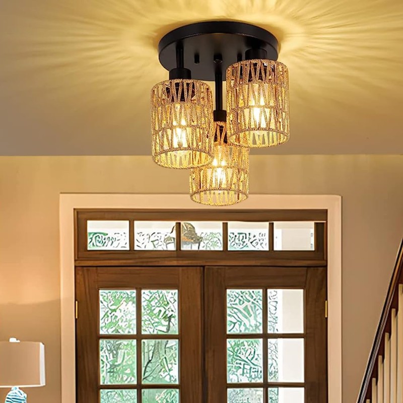 - Boho Natural Rattan Lamp Shade - The Lamp Shade is made of hand-woven natural rattan and durable metal, which is Warm und Chic. The rattan lampshade blends seamlessly with trends such as vintage, nature, boho and hygge