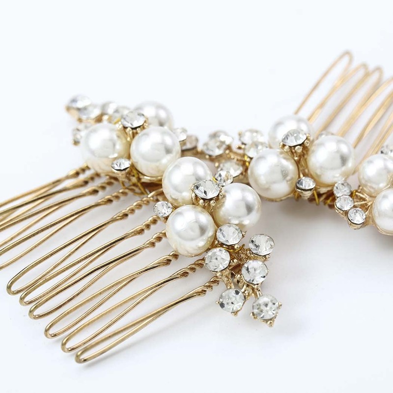 - Peineta para boda está hecha de perlas, perlas, cristales, diamantes de imitación y aleación de buena calidad. El material de las piezas de pelo de novia se selecciona cuidadosamente.