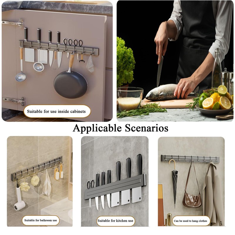 - 【Customizable Storage Solutions】Choose from 2 sizes (40CM/50CM) with 7-9 hooks to fit your kitchen scale. Securely holds chef knives, scissors, and utensils while freeing up drawer space.