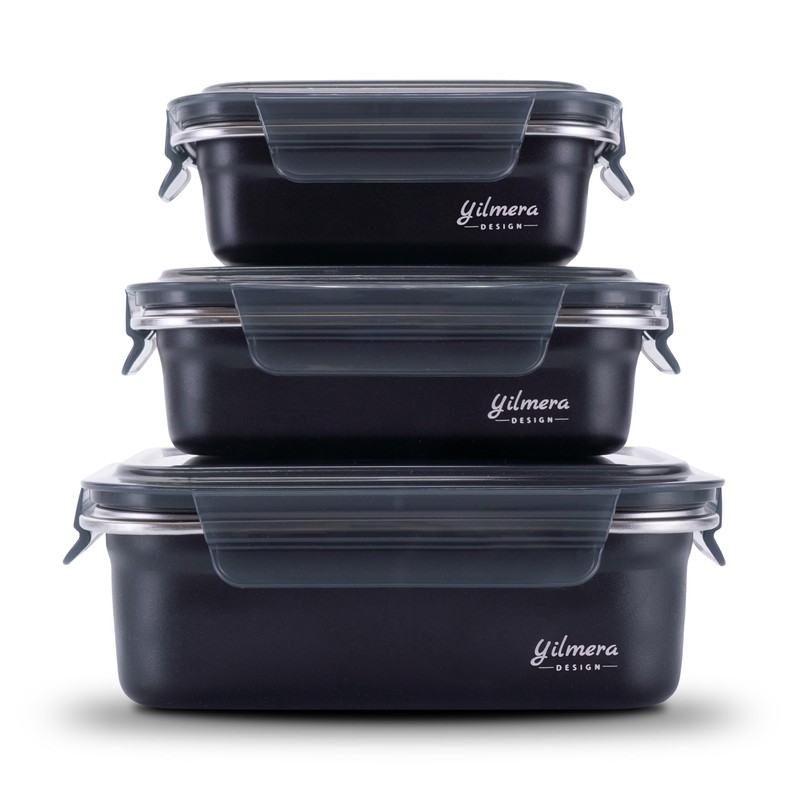 yilmera Design Aufbewahrungsbehälter Set, 3-teilig, Luftdicht, Schwarz